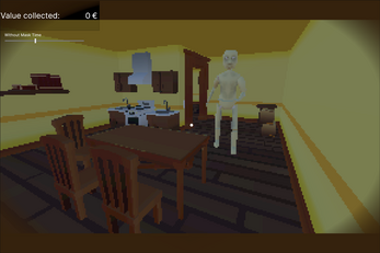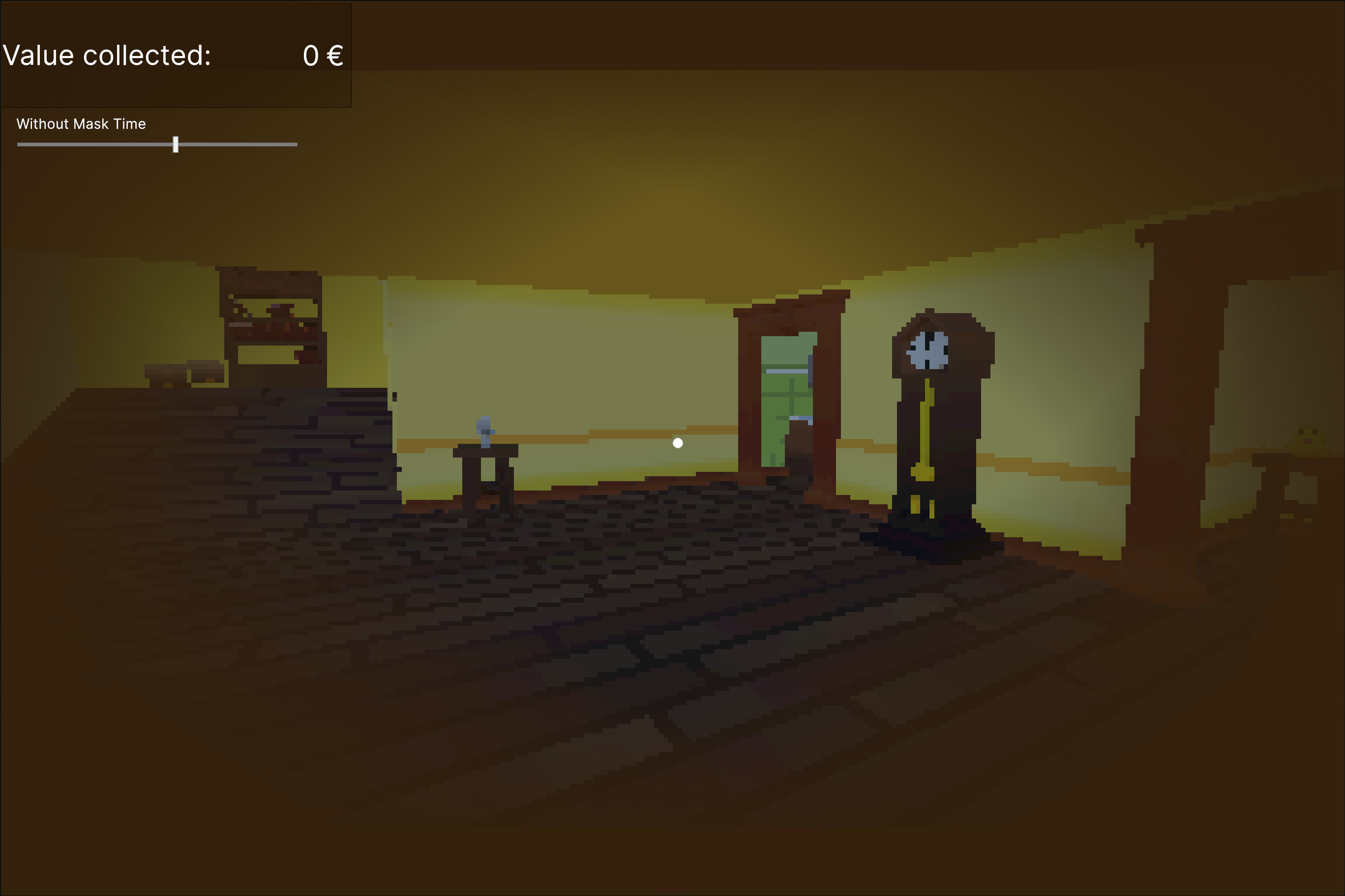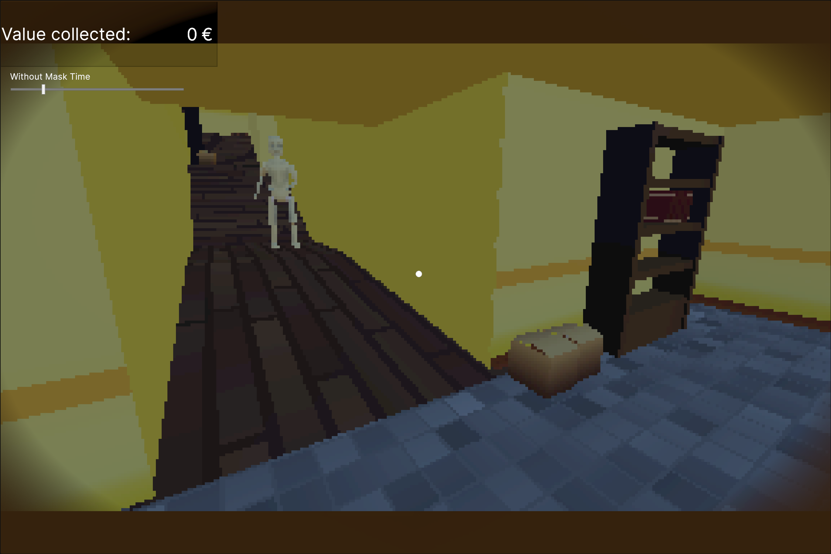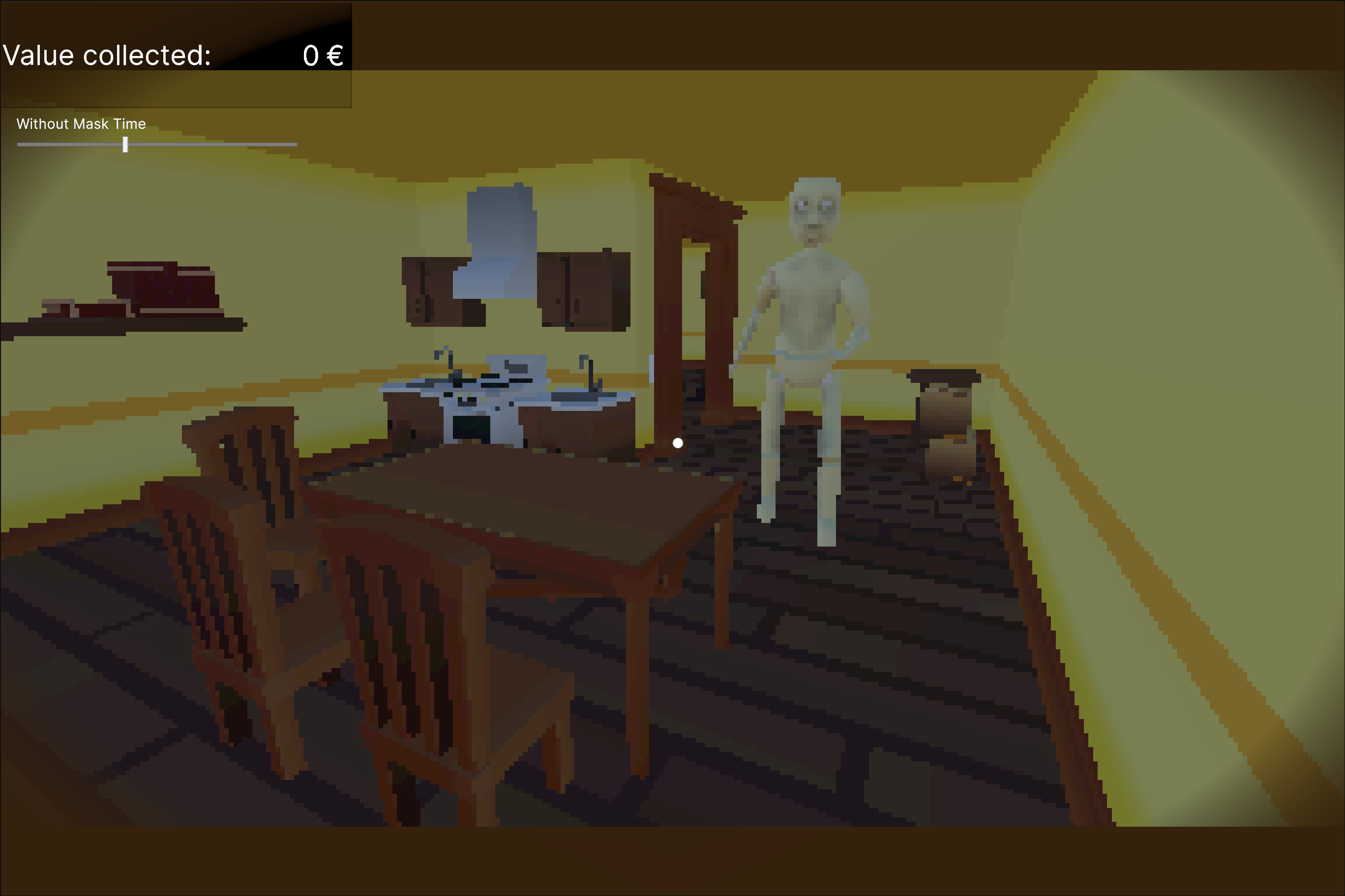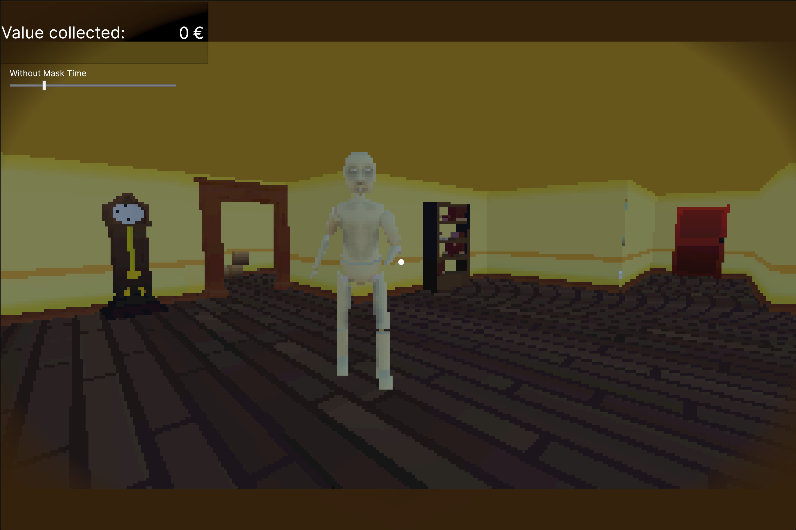 ... but something's wrong with this place. Your sanity frays with every moment spent exposed. When panic sets in, you can don the mannequin mask you found; it steadies your mind and reveals the ducks you must collect. Wearing it comes with a terrible cost: the mannequin awakens. You can't see it with the mask on, but you can hear it.